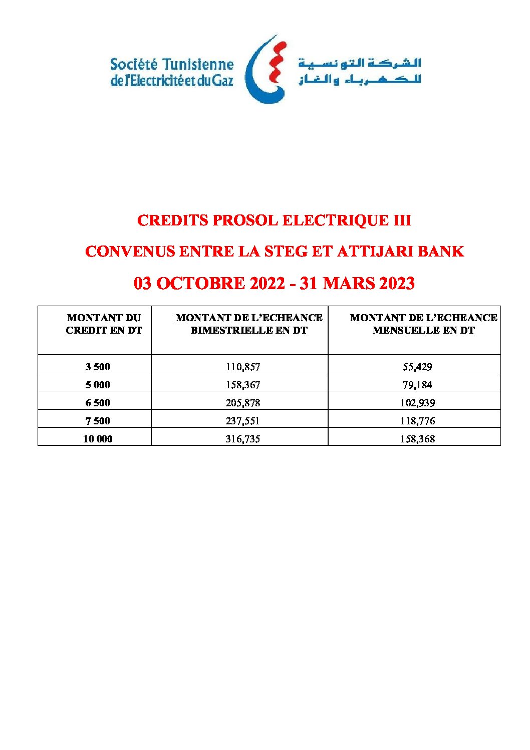 Dans le cadre du programme PROSOL Elec d’énergie photovoltaïque en Tunisie une augmentation au niveau du taux d’intérêt des crédits STEG remboursé ... Lisez plus